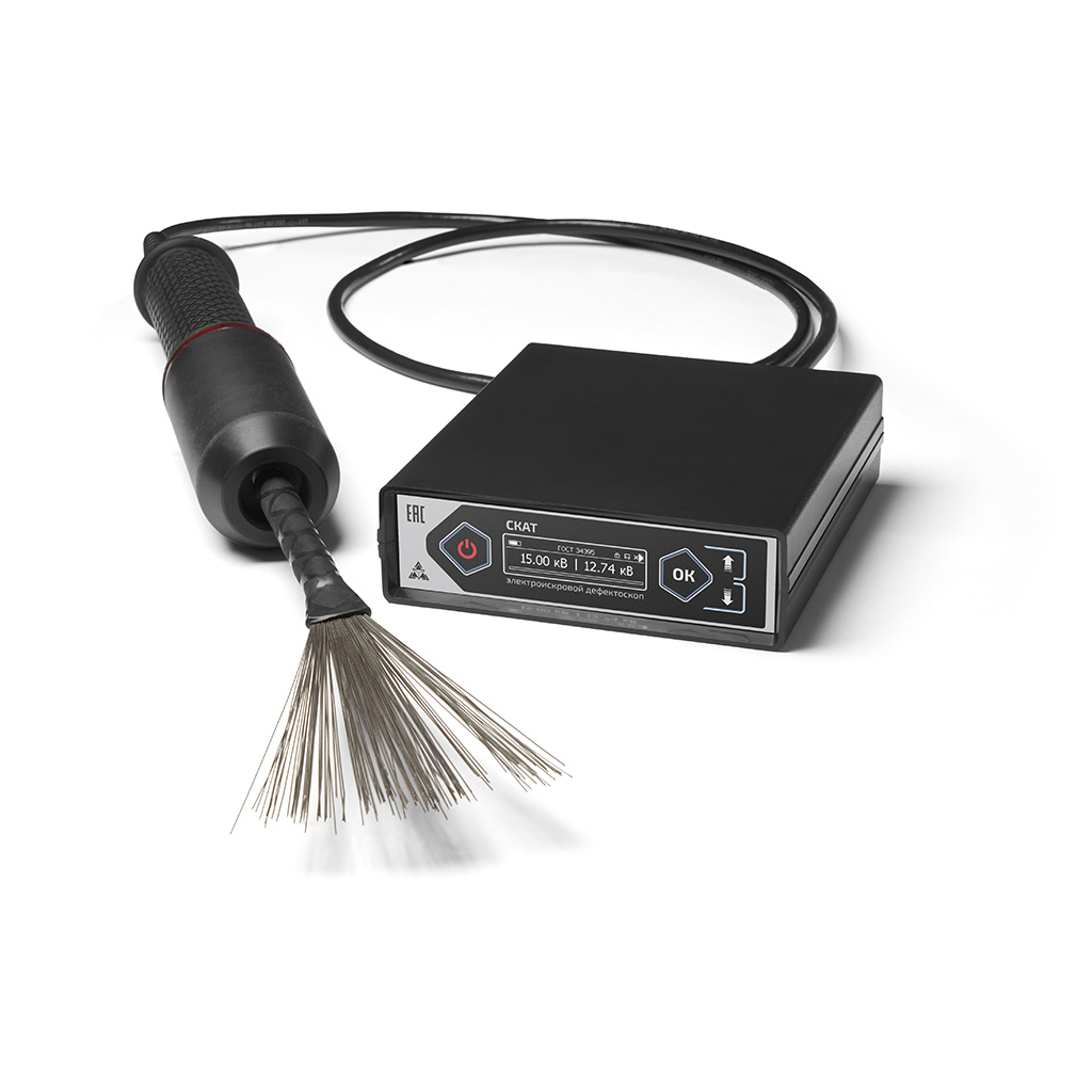 Электроискровой дефектоскоп СКАТ предназначен для ручного контроля сплошности лакокрасочных, полимерных, эпоксидных и битумных изоляционных покрытий, газо- и трубопроводов, емкостей, цистерн и других металлических конструкций (в дальнейшем объектов контроля) в процессе их строительства, эксплуатации и ремонта.